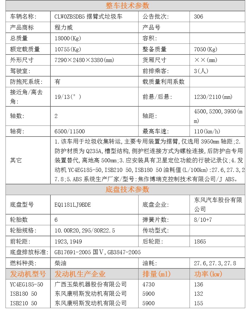 | 東風T3 14方擺臂垃圾車 售后服務說明 | |