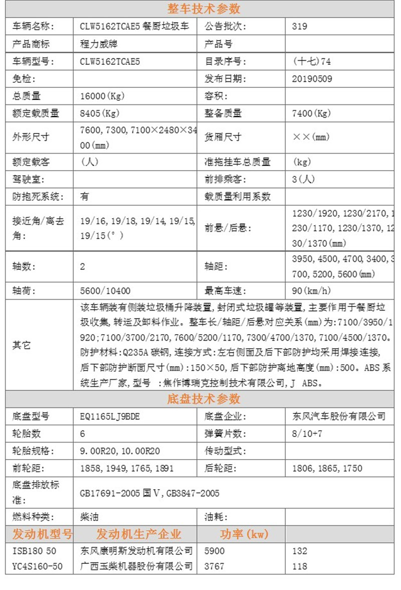 | 東風D9 8.5方餐廚垃圾車 售后服務說明 | |