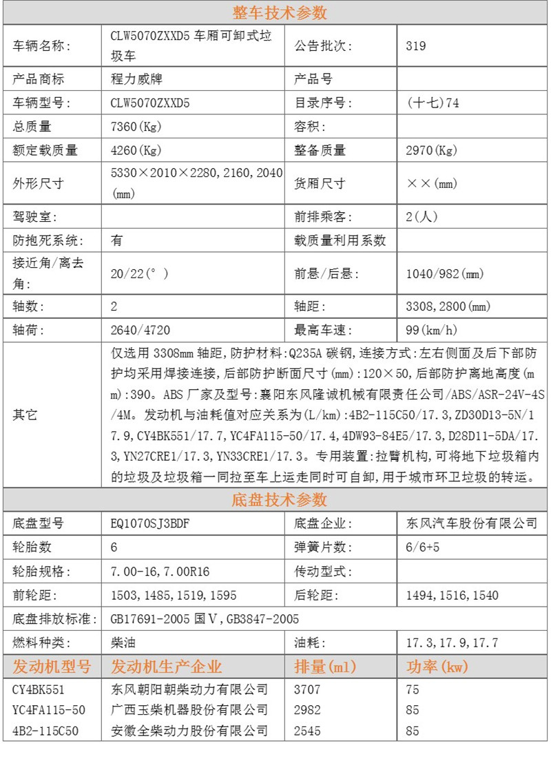 | 東風小多利卡 5方鉤臂垃圾車 售后服務說明 | |