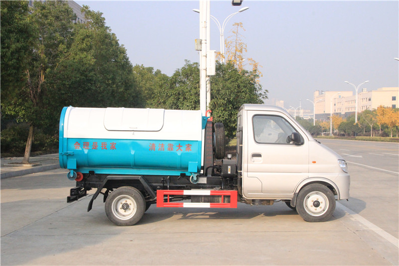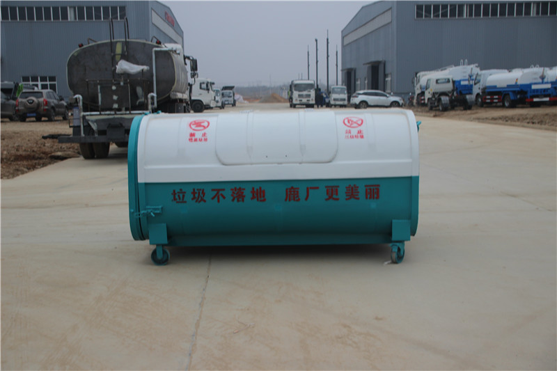 3方勾臂垃圾箱箱體材質:優質碳鋼,邊板2mm,底板3mm,帶啟動撐桿,尾部密封條鎖緊。