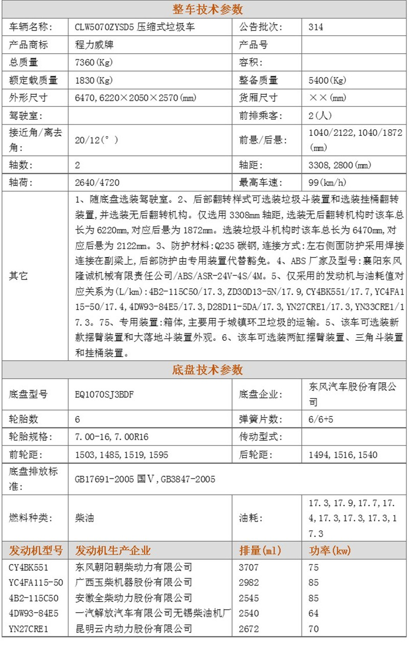 | 東風(fēng)小多利卡 5.5方壓縮垃圾車 售后服務(wù)說明 | |