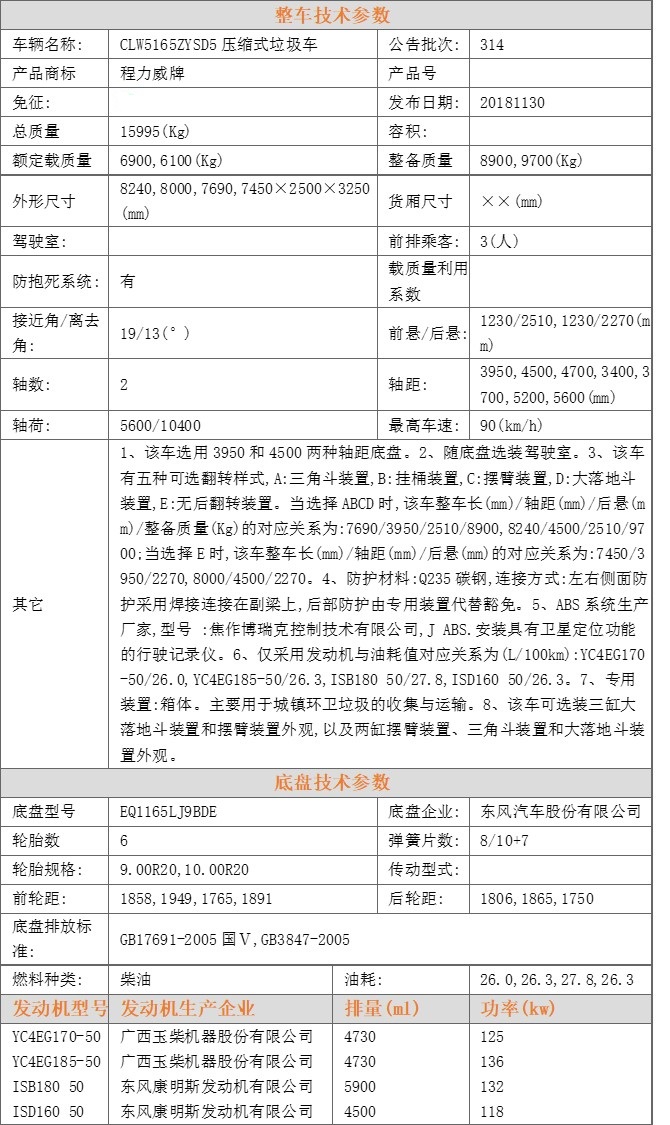壓縮式垃圾車由密封式垃圾廂、液壓系統(tǒng)、操作系統(tǒng)組成。整車為全密封型,自行壓縮、自行傾倒、壓縮過程中的污水全部進入污水廂,解決了垃圾運輸過程中的二次污染的問題,關鍵部件采用進口部件,具有壓力大、密封性好、操作方便、安全等優(yōu)點。